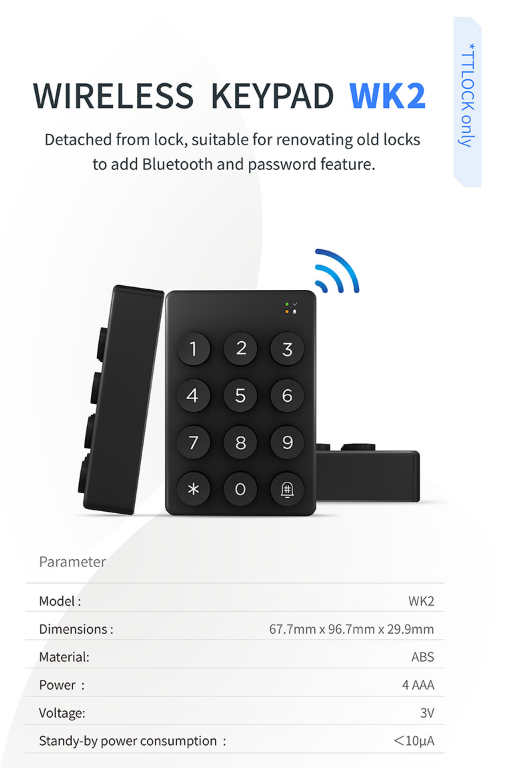 WK2Tastiera digitale wireless TTLOCK compatibile con dispositivi intelligenti Bluetooth TTLOCK con blocco delle impronte digitali
